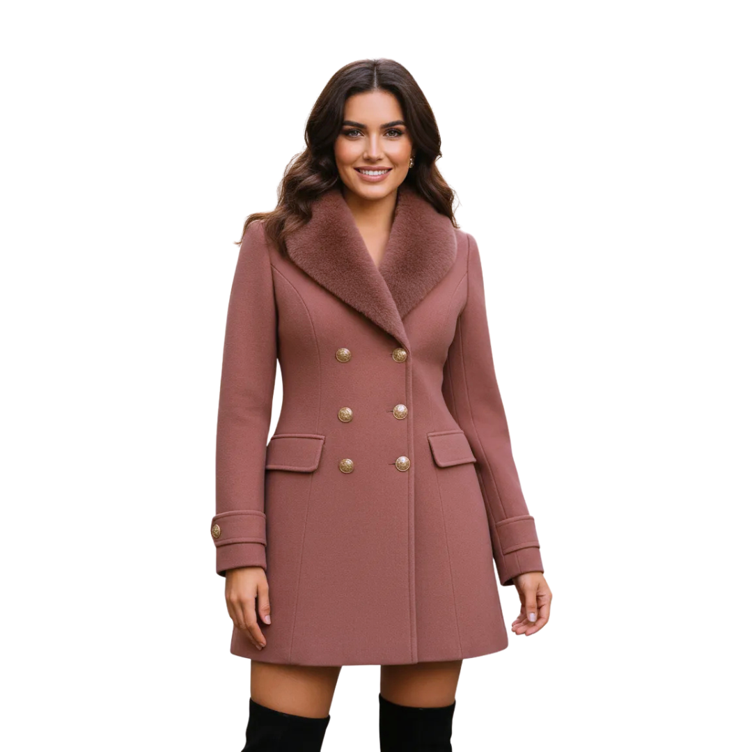Casaco Feminino de Lã Batida com Gola de Pelo – Elegância e Sofisticação