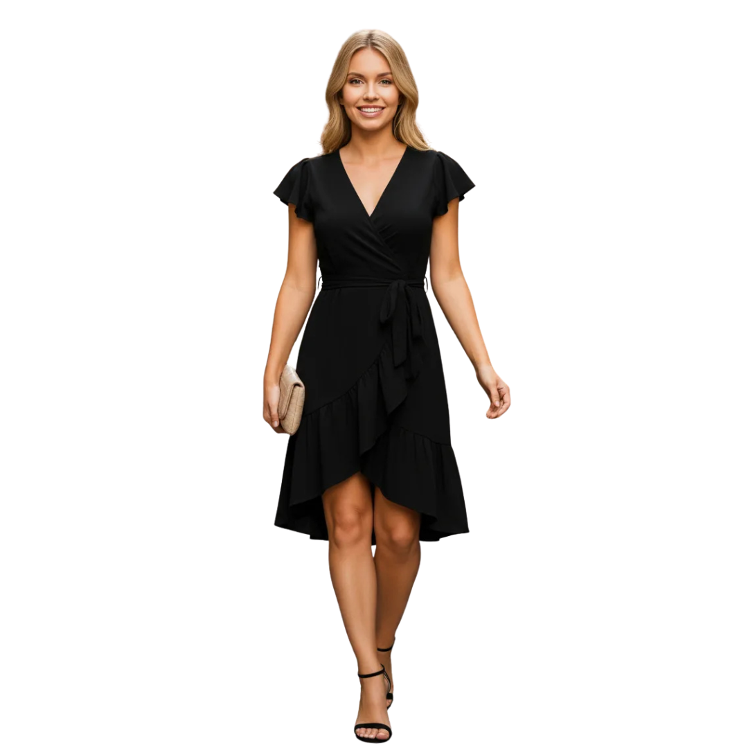 Este vestido curto é a união perfeita entre elegância e praticidade, ideal para mulheres que buscam um visual moderno, sofisticado e versátil. Confeccionado em tecido leve de toque macio, proporciona conforto durante o uso e um caimento impecável, valorizando as curvas de forma natural.