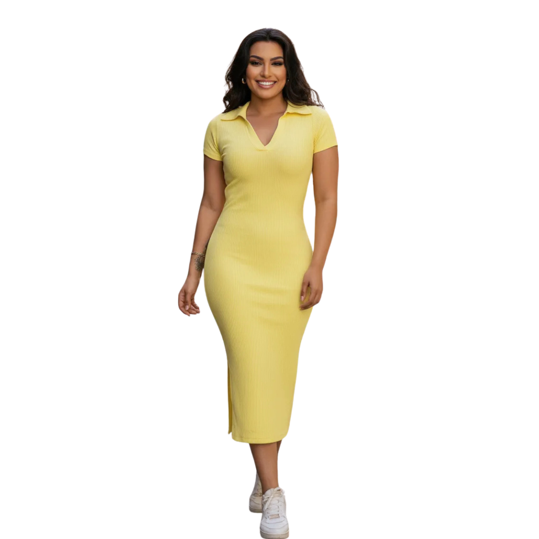 Se você busca um vestido que une praticidade, elegância e versatilidade, este Vestido Midi Polo Feminino é a escolha ideal. Perfeito para o dia a dia, passeios, trabalho ou até eventos mais descontraídos, ele traz uma modelagem que valoriza a silhueta sem abrir mão do conforto. Comprimento midi assimétrico, conferindo sofisticação e movimento.Decote em V com gola estilo polo, Mangas Curtas, ajustadas, que confere um toque esportivo e elegante.