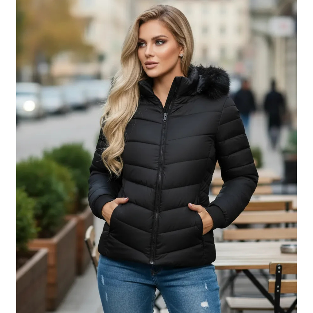 Jaqueta Puffer Feminina Com Capuz Removível Moda Inverno Preto